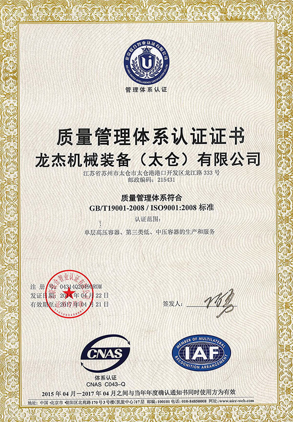 上海龍杰機(jī)械裝備有限公司是國(guó)家認(rèn)證頒發(fā)的一、二、三類(lèi)(A1、A2)高壓非標(biāo)容器和美國(guó)ASME設(shè)計(jì)、制造企業(yè),也是中石油、中石化定點(diǎn)的石油、化工裝備的制造基地。